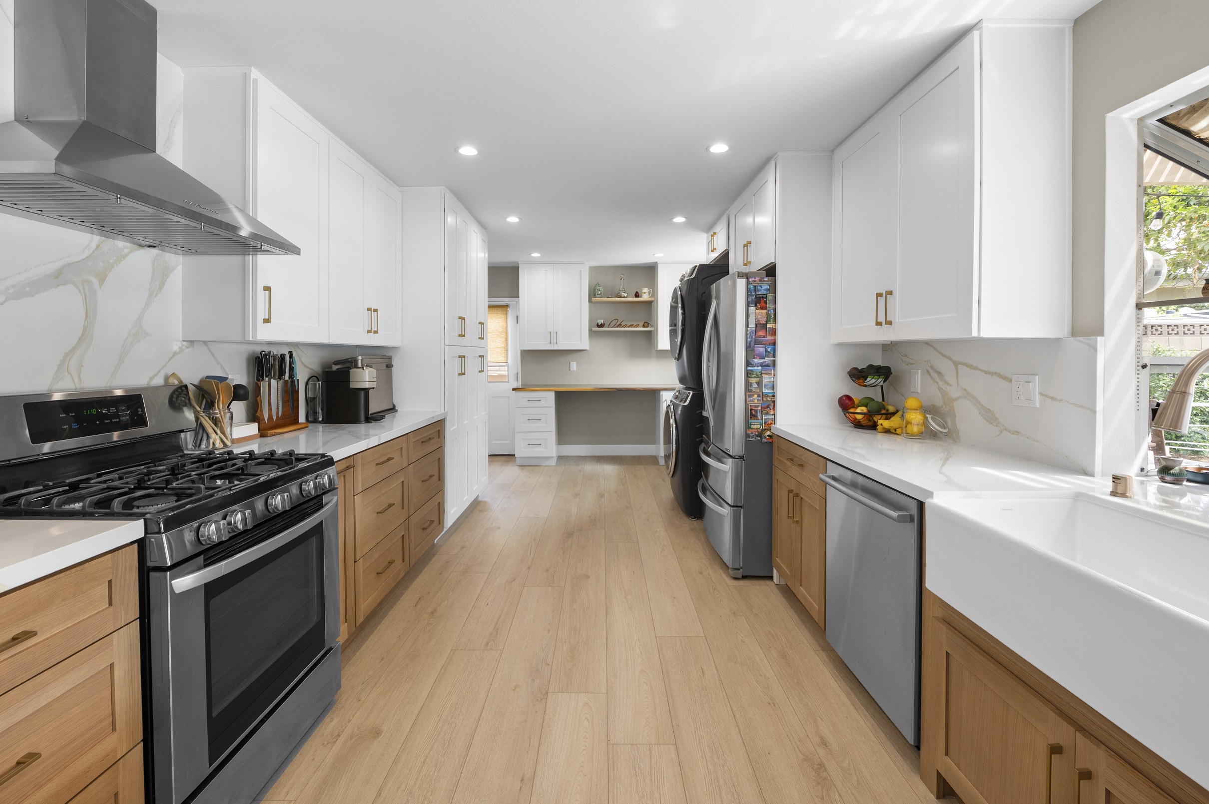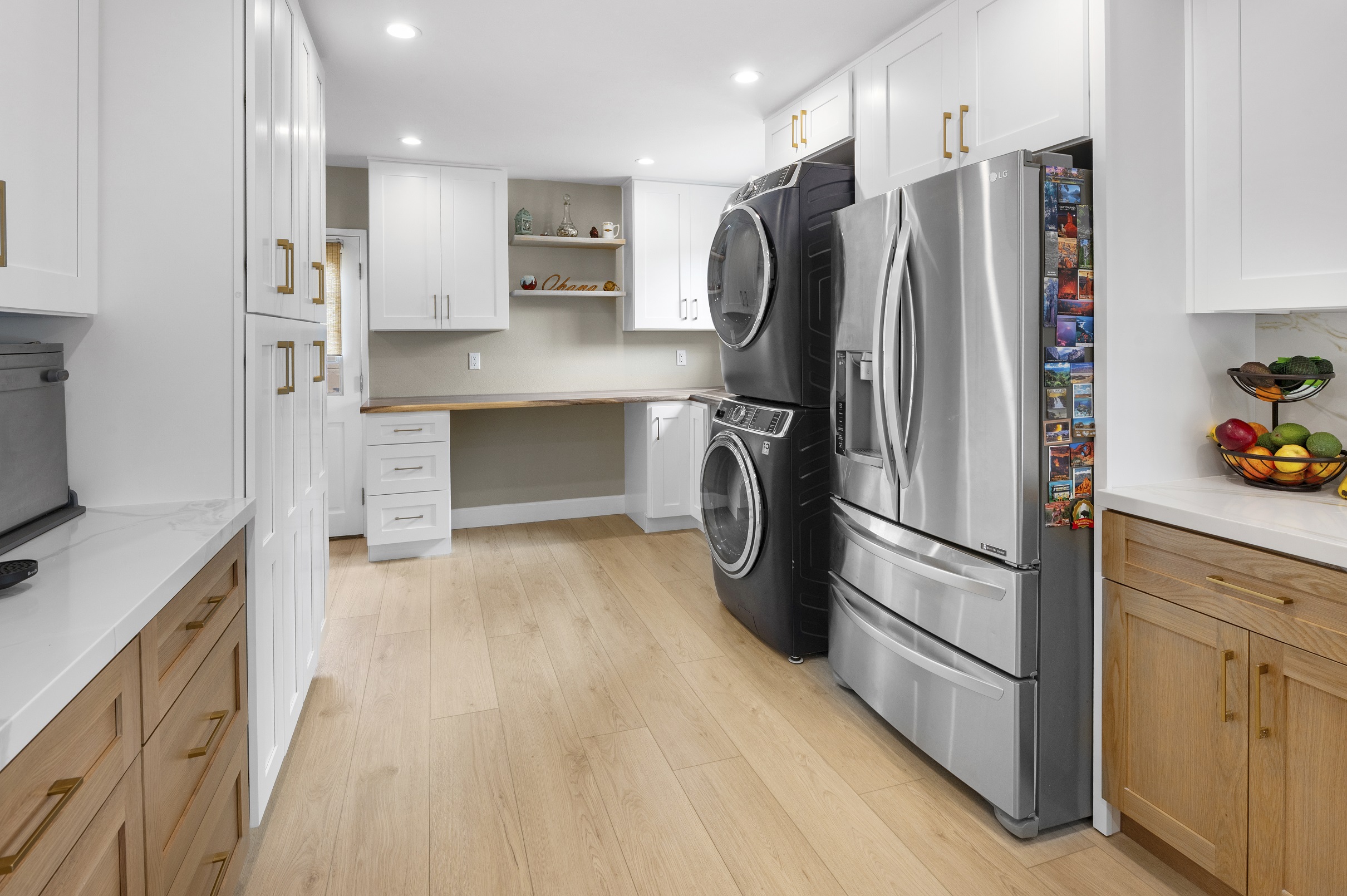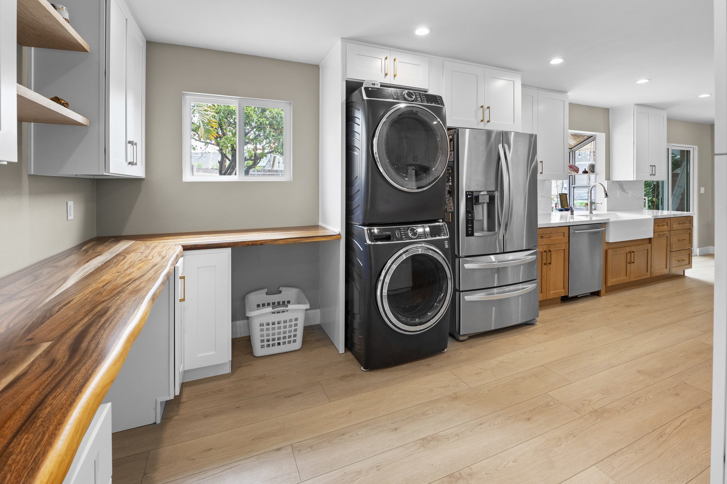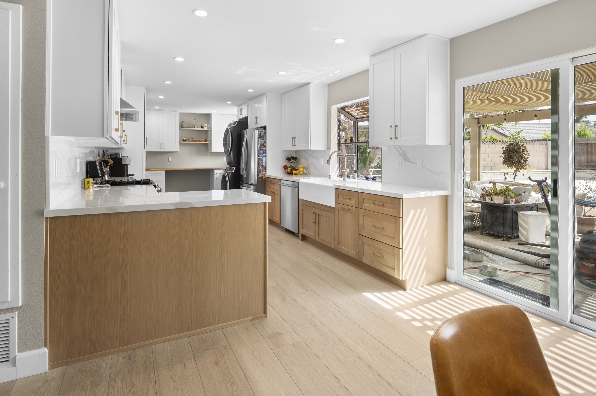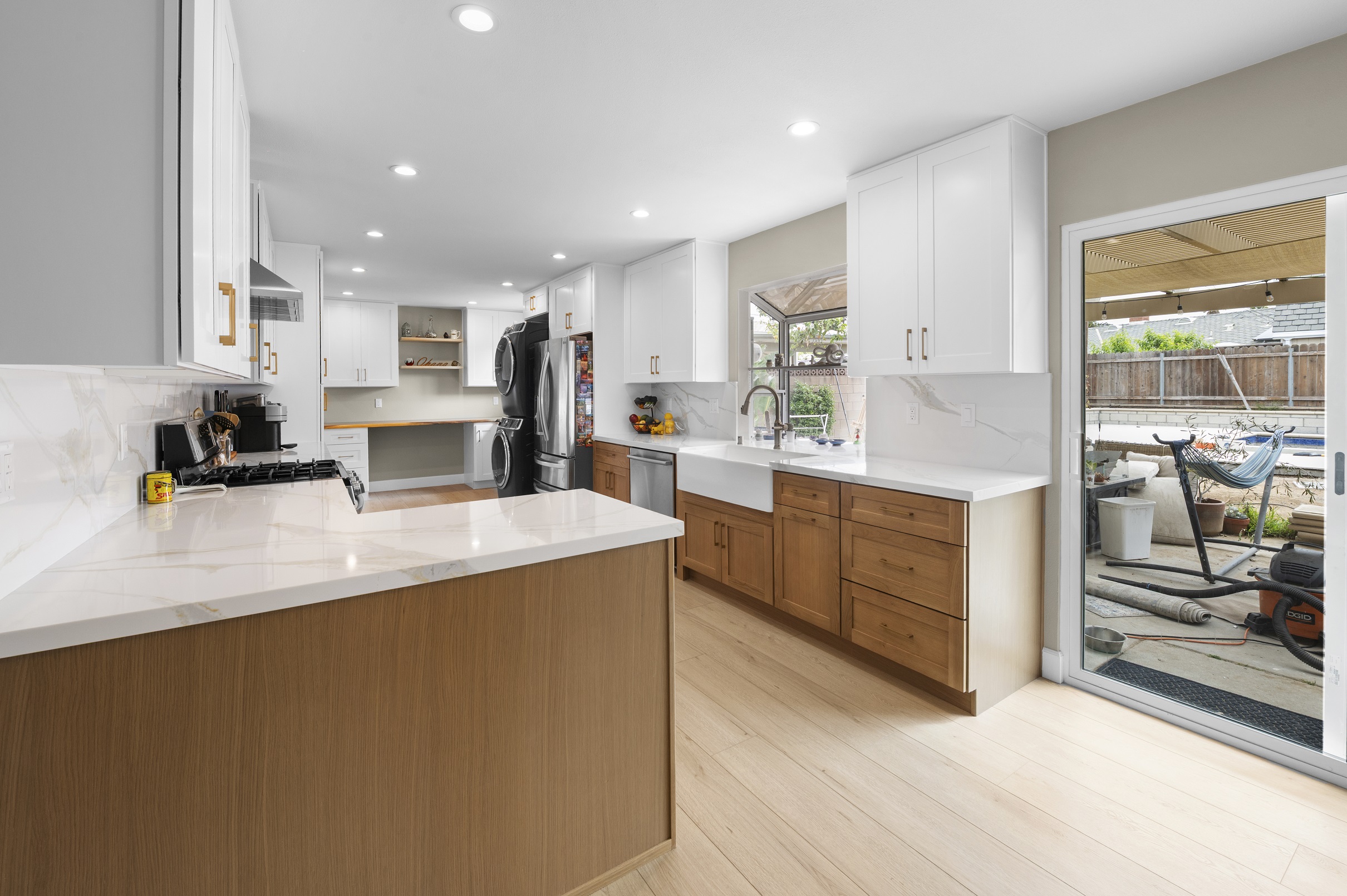 This recent project in Camarillo features a complete transformation of the heart of the home with a custom kitchen remodel, stractural wall removal and a functional laundry room upgrade designed to flow beautifully with the rest of the space.
