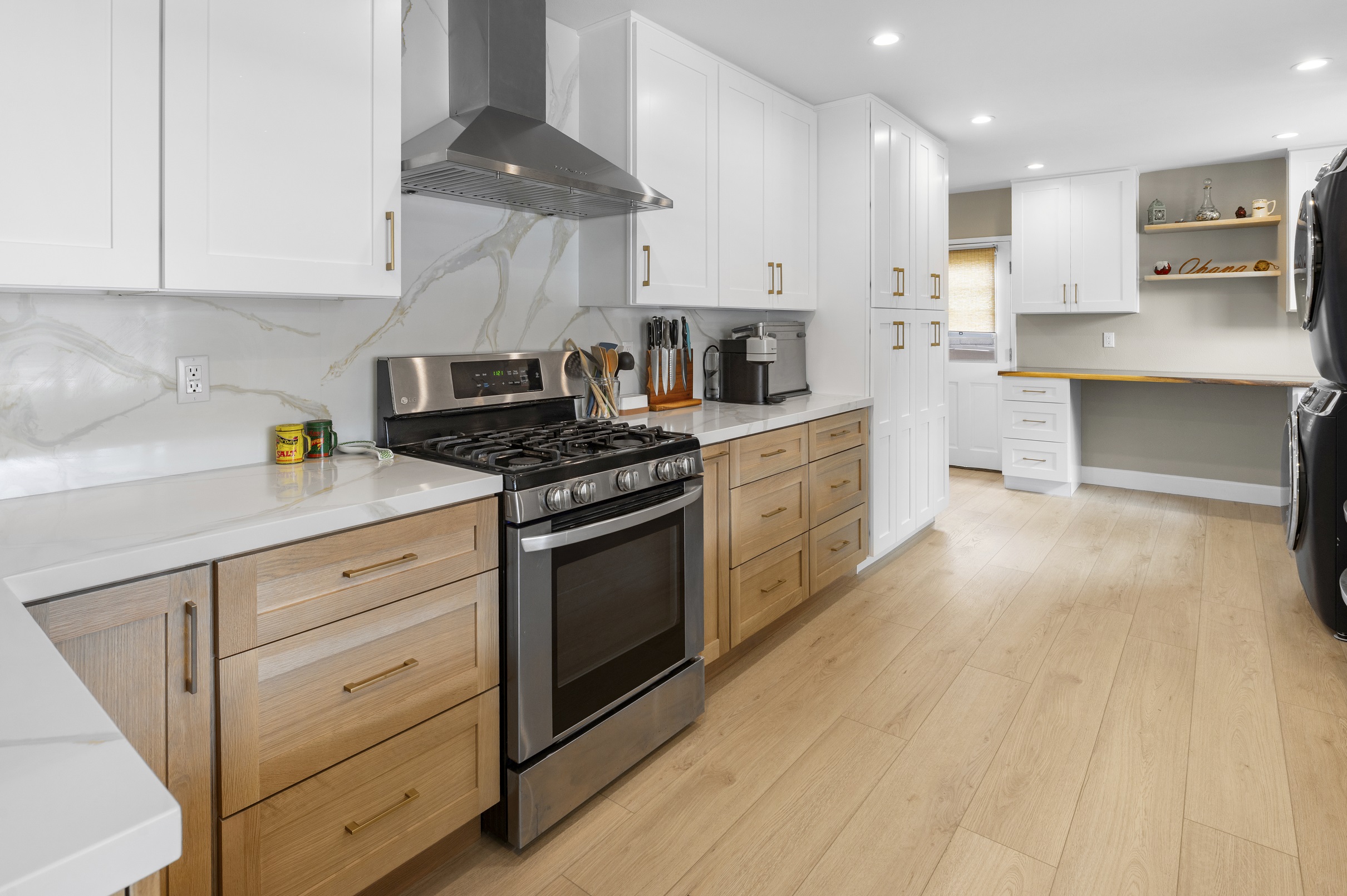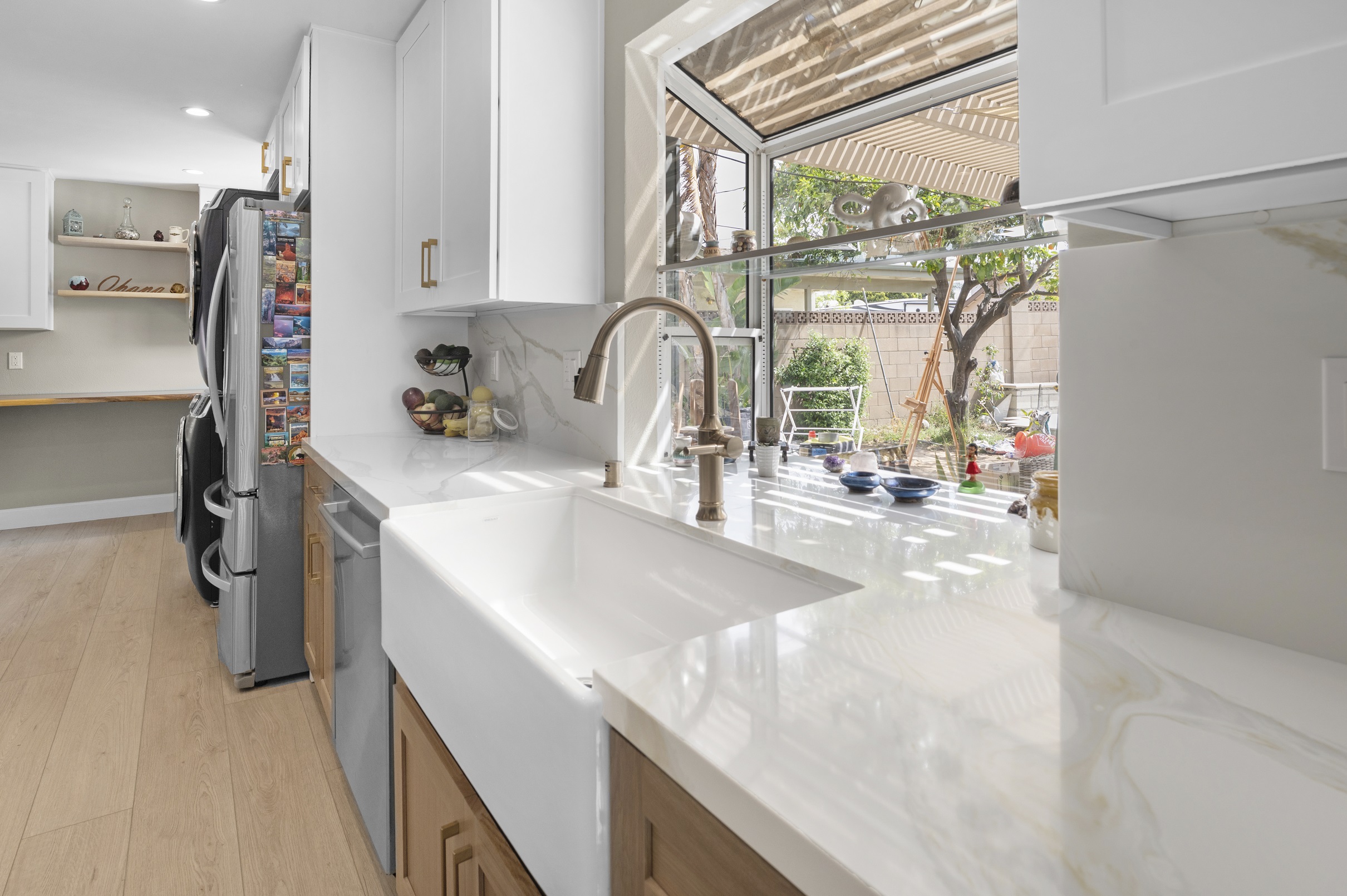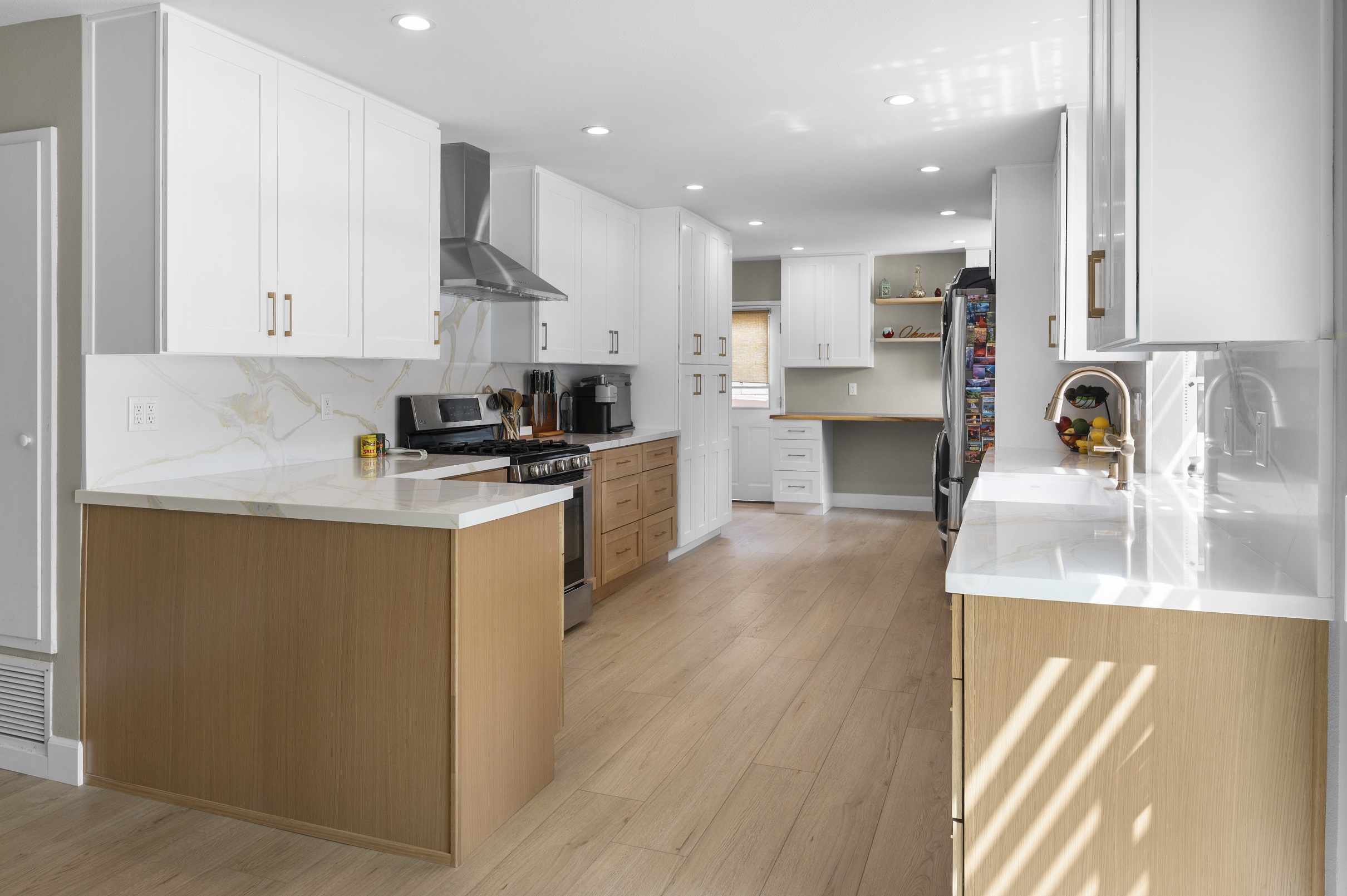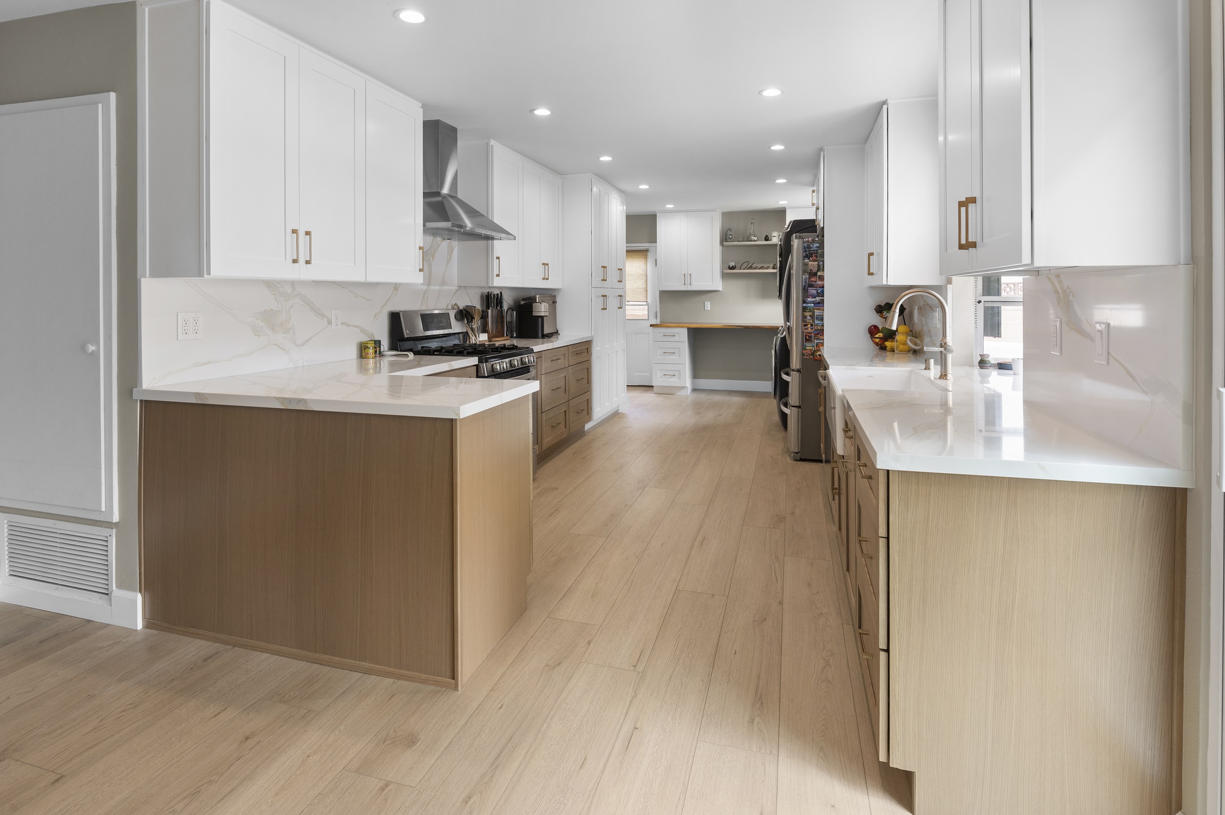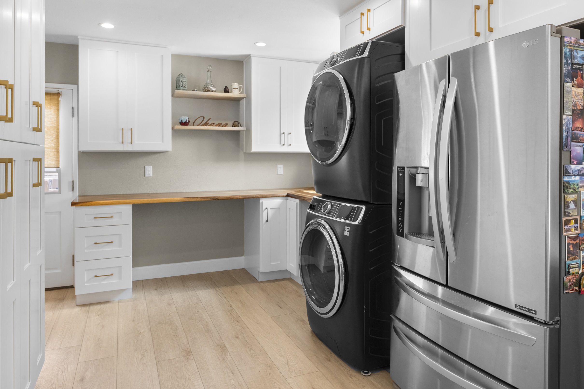 This recent project in Camarillo features a complete transformation of the heart of the home with a custom kitchen remodel, stractural wall removal and a functional laundry room upgrade designed to flow beautifully with the rest of the space.